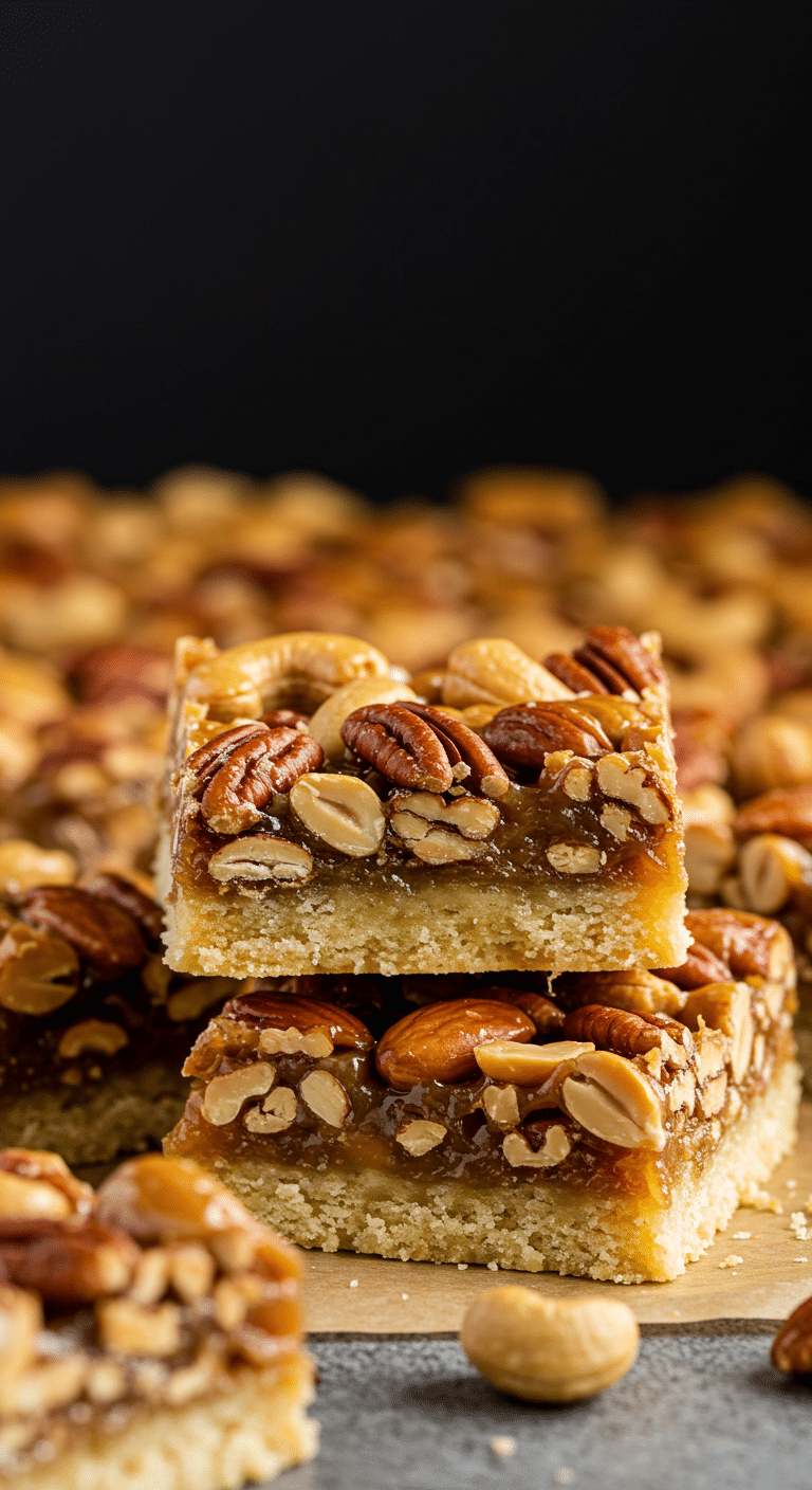 You’re now ready to master Mixed Nut Bars! These wholesome, crunchy treats bring a buttery crust, mixed nuts, and butterscotch together for a bar that’s perfect for potlucks, holiday trays, or quick snacks. With just 30 minutes and one pan, you can create a flavorful, crowd-pleasing batch that’s as delicious as it is easy. Play with vegan or spiced twists to make it your own. Grab that baking pan, melt some butterscotch, and enjoy this nutty delight. Share your results in the comments—I’d love to hear how it turned out!