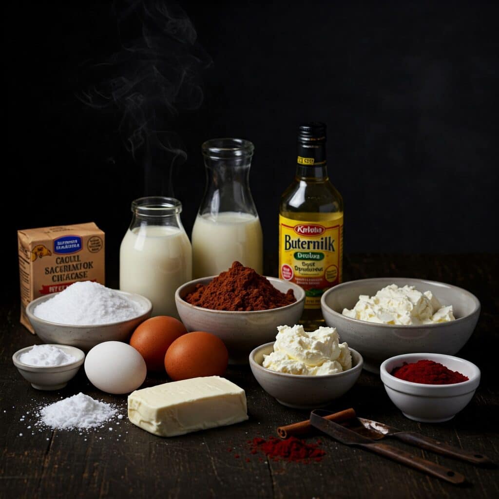 Here is your ingredient checklist for this classic Red Velvet Cake: