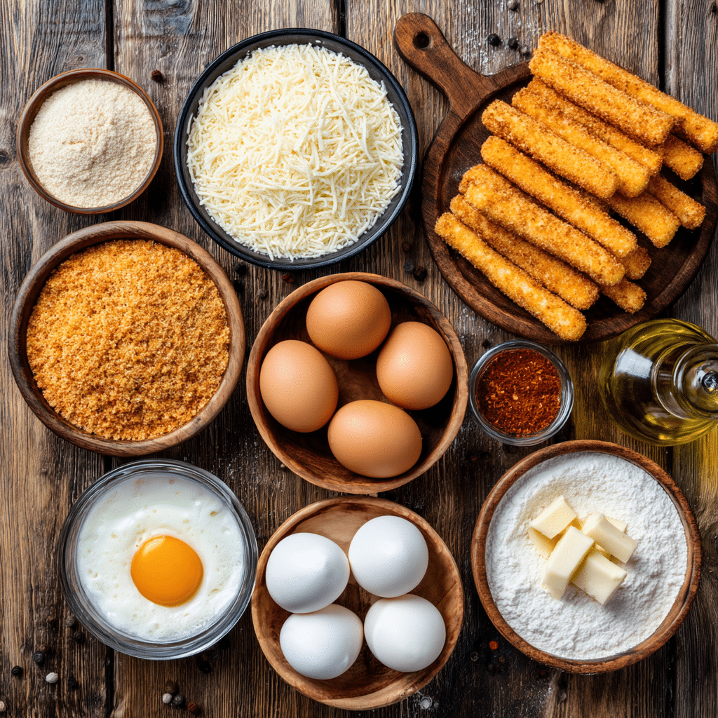 • All-Purpose Flour (1 cup): Helps the egg wash adhere to the cheese.