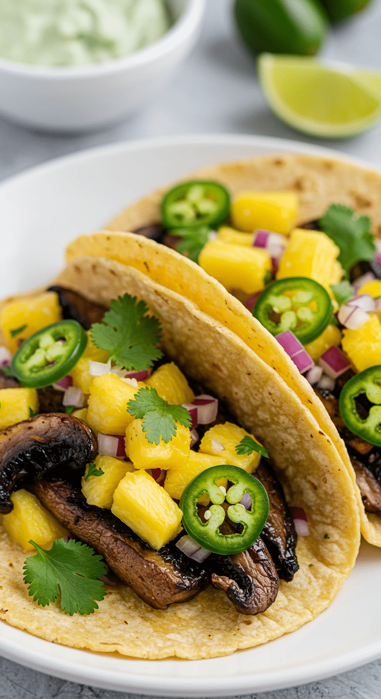 Why These Ingredients Matter: The grilled portobello mushrooms provide a meaty, smoky base, while the avocado salsa and pickled onions add creamy and tangy contrasts. Cilantro and lime bring freshness, making this a balanced, vegan meal perfect for any occasion.