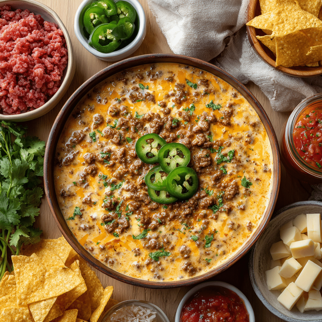 Nacho Dip is a classic appetizer that’s all about rich, melty cheese and hearty beef, spiked with the zesty kick of salsa. The slow cooker ensures a smooth, warm dip that’s ready when you are, making it ideal for entertaining. It’s versatile, budget-friendly, and customizable with toppings like jalapeños for extra heat. Whether you’re hosting a crowd or craving a simple snack, this dip delivers comfort and flavor in every scoop.