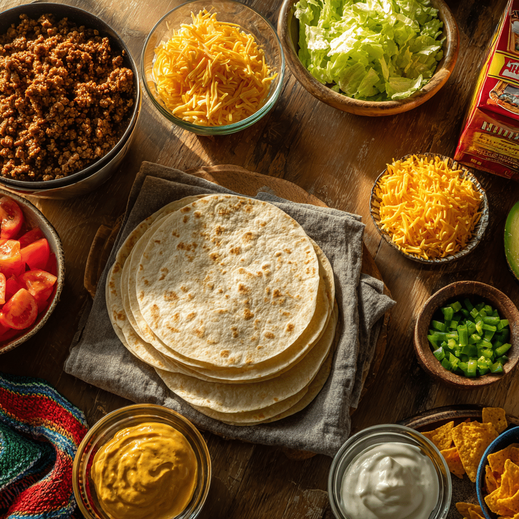 - Large Flour Tortilla Wraps (4): Acts as the soft, chewy wrapper, holding the nacho-inspired filling.