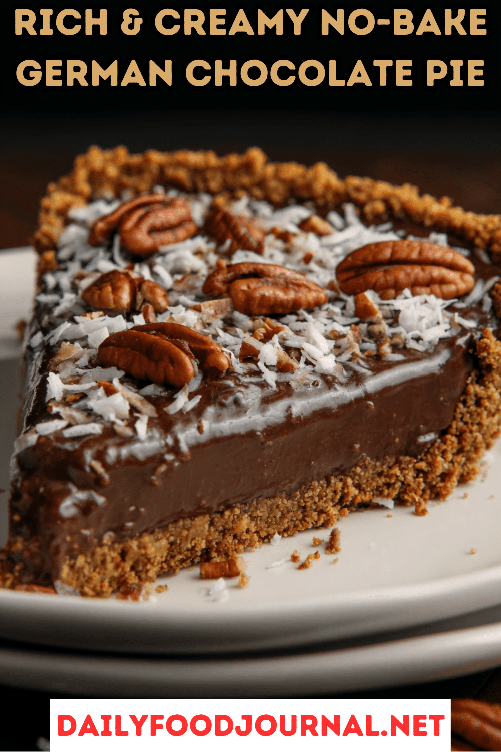 No-Bake German Chocolate Pie is a creamy, decadent dessert that’s perfect for any occasion. With its rich chocolate pudding, nutty coconut-pecan topping, and buttery crust, it delivers all the flavors of German chocolate cake without the oven. Easy to make and make-ahead friendly, it’s ideal for holidays, potlucks, or a sweet indulgence at home. Customize with garnishes or variations to make it your own, and pair with your favorite drinks or sides. Grab your mixing bowl and let’s make a pie that’s sure to impress! What’s your favorite way to top this no-bake treat?
