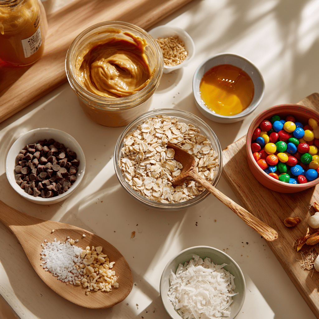 No-Bake Monster Cookie Balls use simple ingredients to create a chewy, flavorful snack. Here’s what you need and why each one matters: