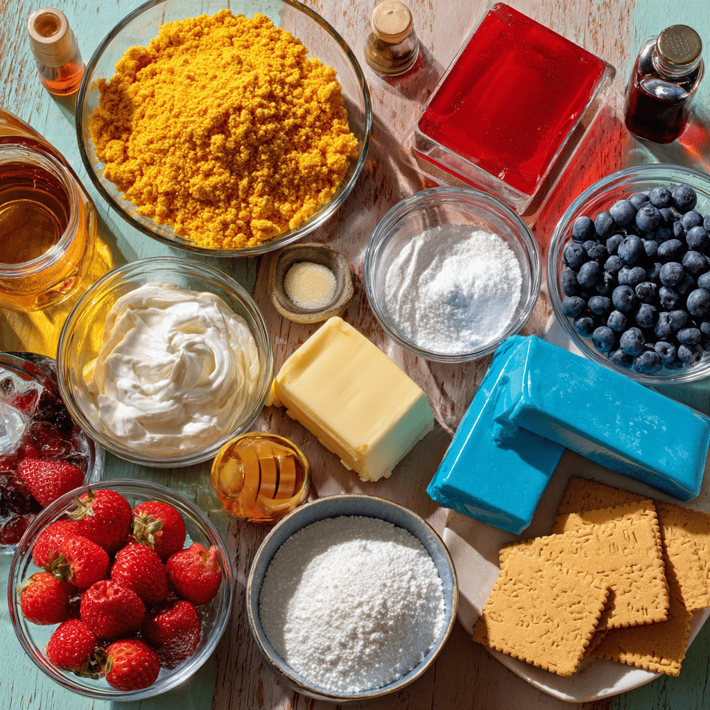 Follow these steps to create a No-Bake Patriotic Cheesecake that’s creamy, colorful, and perfectly festive:
