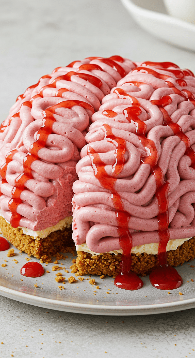 Have you ever wondered if a dessert could look like a spooky brain but taste like a sweet strawberry treat? Picture a creamy, pink cheesecake shaped like a brain, filled with juicy strawberries and drizzled with red syrup that looks like blood. Sounds like the perfect scary dessert for a Halloween party, right? This No-Bake Strawberry Cheesecake Brain is an intermediate recipe that takes just 40 minutes of active prep and will thrill your guests with its haunting look and yummy flavor. Whether you’re hosting a haunted bash or a fun family dessert night, this brain will have everyone digging in with delight. Let’s whip up some creepy, creamy fun!