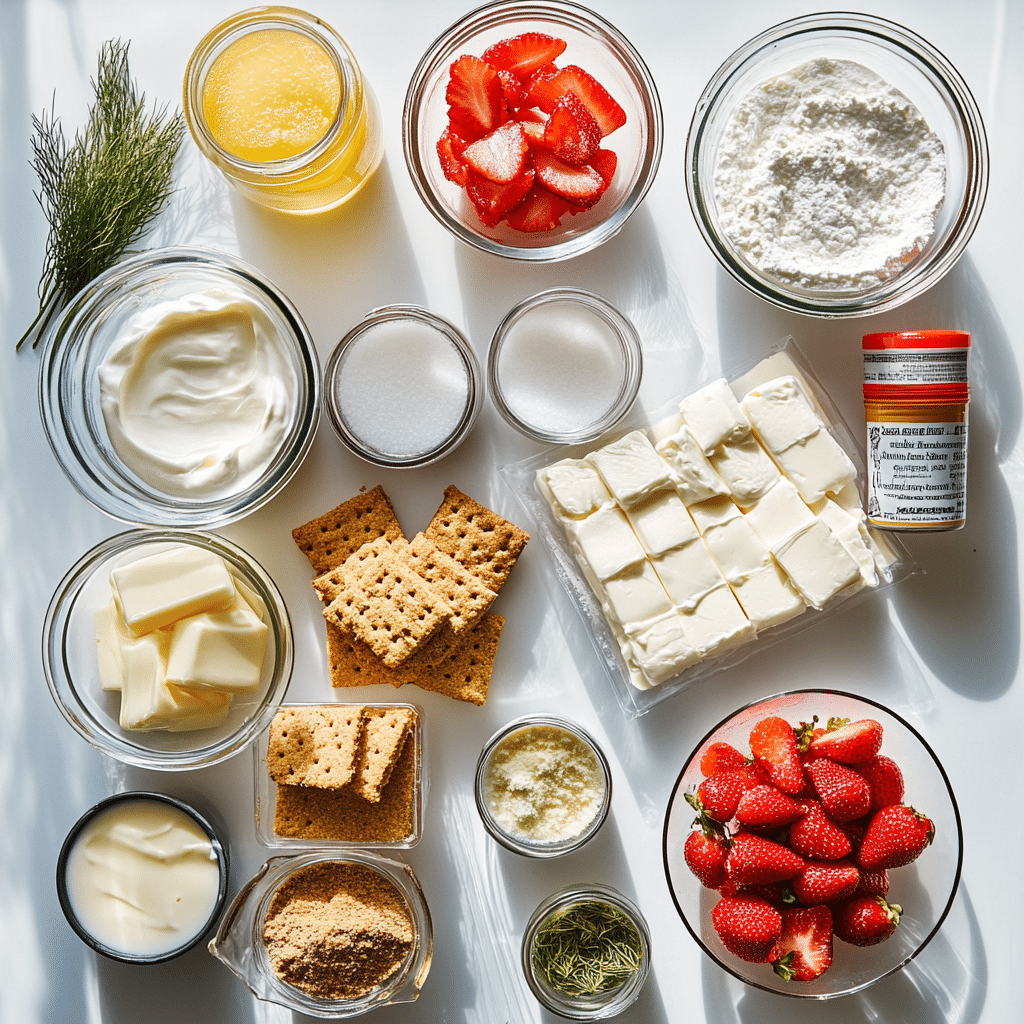 Let’s take a closer look at the ingredients that make this No-Bake Strawberry Cheesecake so special. First, we have the ingredients for the Crust:
