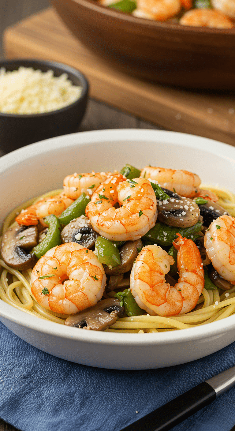 Ever wished you could bring the fresh, vibrant flavors of the North Carolina coast to your dinner table in under 30 minutes? The North Carolina Shrimp Sauté is your answer! This dish is a delightful mix of tender shrimp, savory mushrooms, crisp green peppers, and a buttery garlic sauce, all served over warm linguine with a sprinkle of Romano cheese