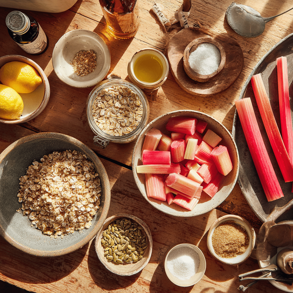 Pro Tip: Weigh rhubarb (575 grams) for accuracy, as volume can vary; use certified gluten-free oats to avoid cross-contamination. Grind pepitas finely for a flour-like texture if not using almond flour.