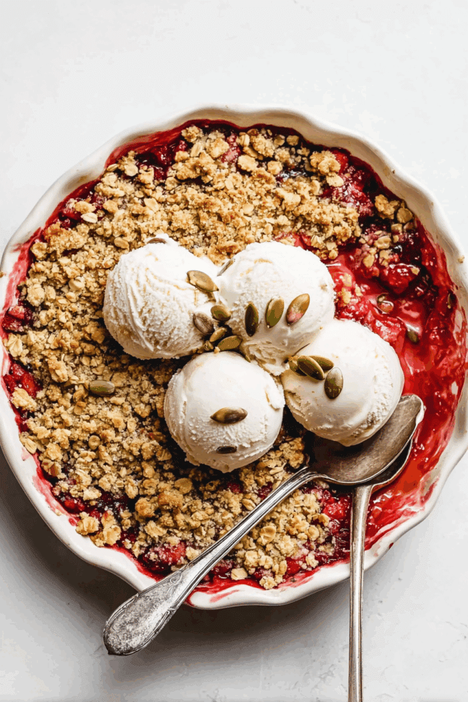 - Vegan Rhubarb Crisp: Use coconut oil or vegan butter instead of butter; ensure ice cream is dairy-free.