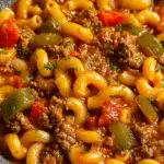 Picture a steaming bowl of Old-Fashioned Goulash Classic, filled with tender pasta, savory beef, and a rich tomato sauce, all sprinkled with melty cheese.