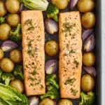 One-Pan Roasted Salmon with Potatoes and Romaine is the perfect way to enjoy a healthy, flavorful meal that’s both easy and elegant. With its juicy salmon, golden potatoes, and tender romaine, it’s a dish that’s as delicious as it is convenient. Perfect for weeknight dinners, healthy meals, or impressing guests, this one-pan wonder is sure to become a favorite. Play with the variations, garnish with your favorites, and savor every flavorful, tender bite. What’s your favorite way to enjoy this roasted salmon? Share your ideas in the comments and let us know how it turned out!
