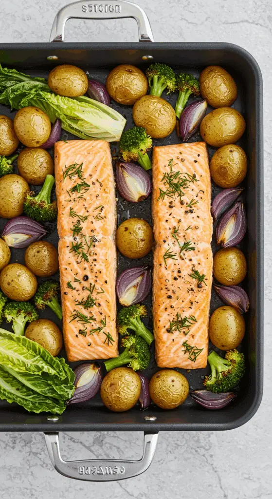 Making this One-Pan Roasted Salmon with Potatoes and Romaine is all about creating a balanced, elegant dish with minimal cleanup. Here’s how to make it perfect:
