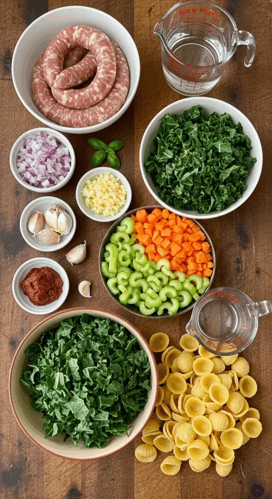 Craving a comforting, flavorful meal that comes together in a single pot? This One-Pot Orecchiette Ragu is your perfect choice! Featuring savory Italian pork sausage, tender orecchiette pasta, vibrant vegetables like dino kale, carrots, and celery, and a rich tomato-based sauce, this dish is a delightful blend of hearty, savory, and earthy flavors