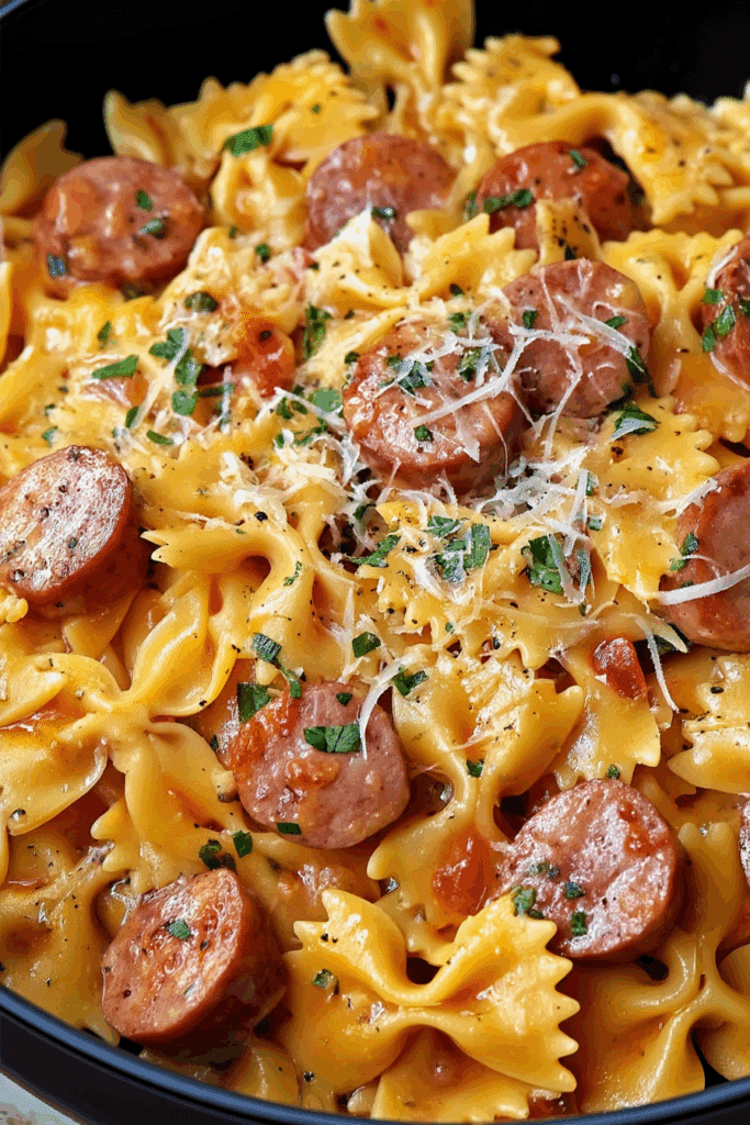 If the sauce gets too thick, add a bit more broth to loosen it up. Too thin? Simmer uncovered for a few extra minutes. No bow tie pasta? You can use penne, rotini, or even shells. Want it spicier? Add red pepper flakes or use spicy sausage. Need a veggie boost? Stir in spinach, peas, or bell peppers.