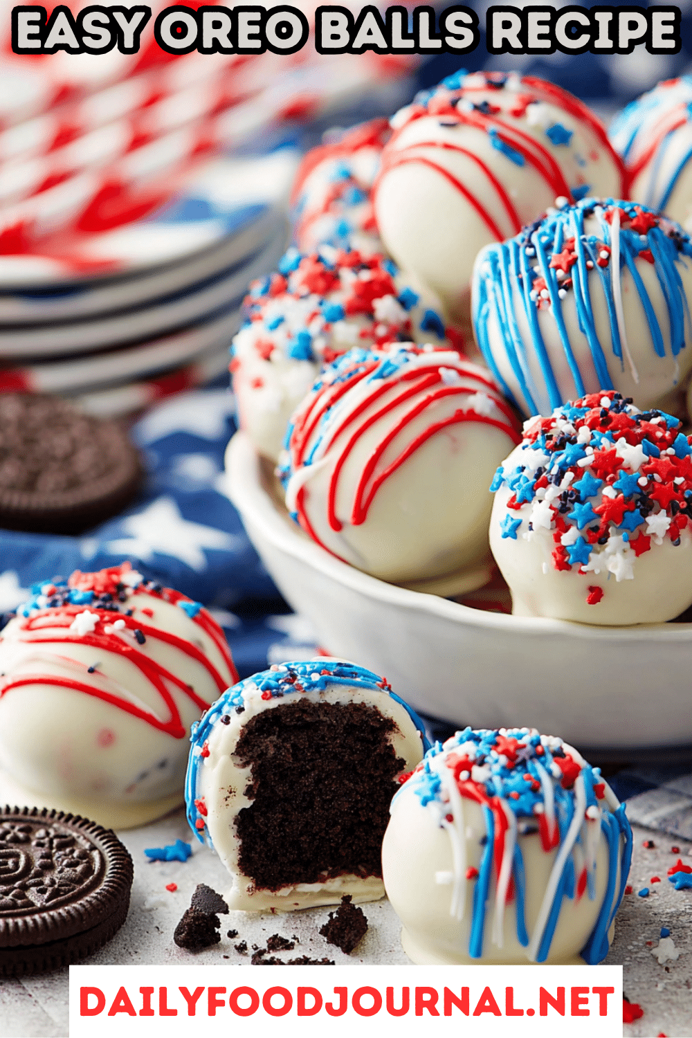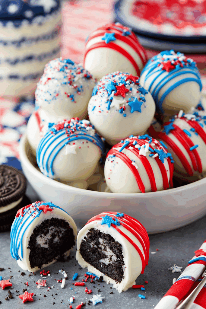 • Berry Patriot Balls: Mix dried cranberries or blueberries into the Oreo mixture for a fruity twist.