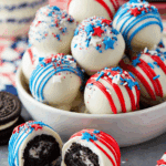 Want a dessert that’s as dazzling as Fourth of July fireworks and requires no oven? These Fourth of July Oreo Balls are your answer! These creamy, chocolatey truffles combine crushed Oreos with cream cheese, are dipped in white chocolate, and decorated with vibrant red and blue candy melts and patriotic sprinkles.