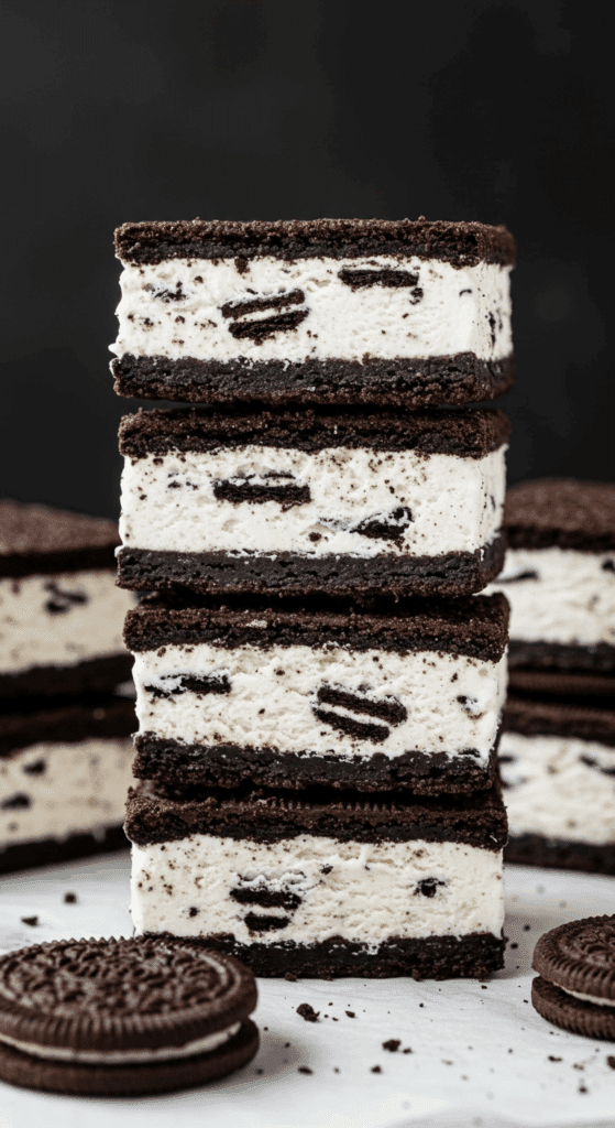 Oreo Ice Cream Sandwiches are the perfect way to enjoy a decadent, chilled dessert that’s both creamy and crunchy. With a no-churn vanilla-Oreo ice cream filling and buttery Oreo crusts, they’re as delicious as they are easy to make. Perfect for parties, hot days, or sweet cravings, this dessert is sure to become a favorite. Play with the variations, garnish with your favorites, and savor every chocolatey, creamy bite. What’s your favorite way to enjoy these Oreo ice cream sandwiches? Share your ideas in the comments and let us know how it turned out!