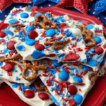 Ever wanted a dessert that’s as easy as melting chocolate and looks like a fireworks show? This Patriotic Bark is your answer! With creamy vanilla almond bark, crunchy pretzels, colorful M&M’s, and festive sprinkles, it’s the perfect no-bake treat for 4th of July, Memorial Day, or any summer party.