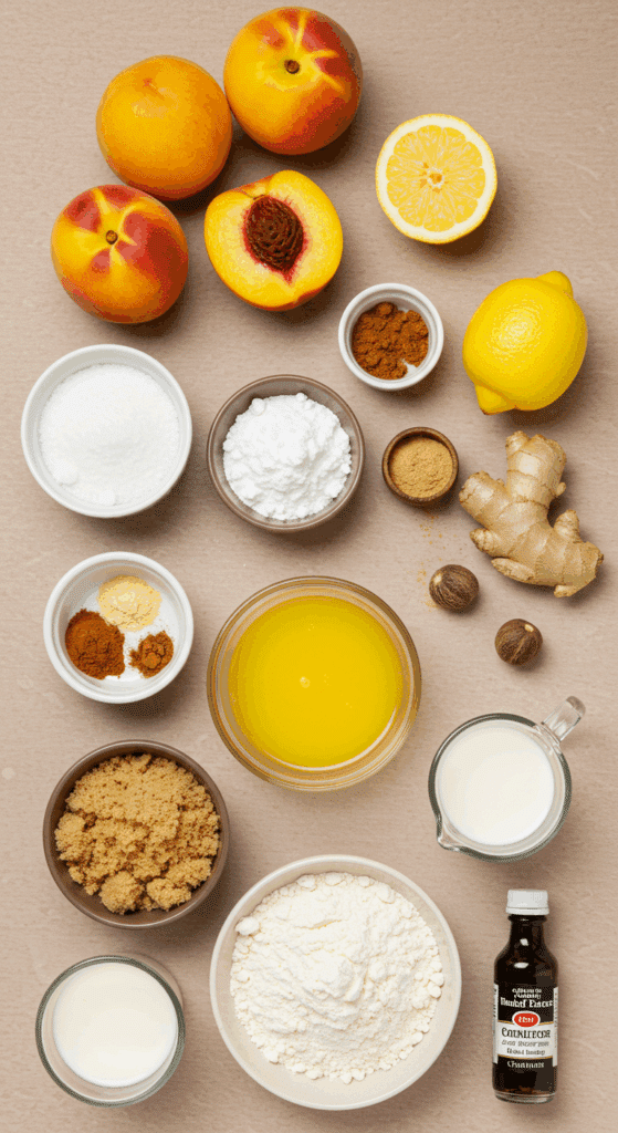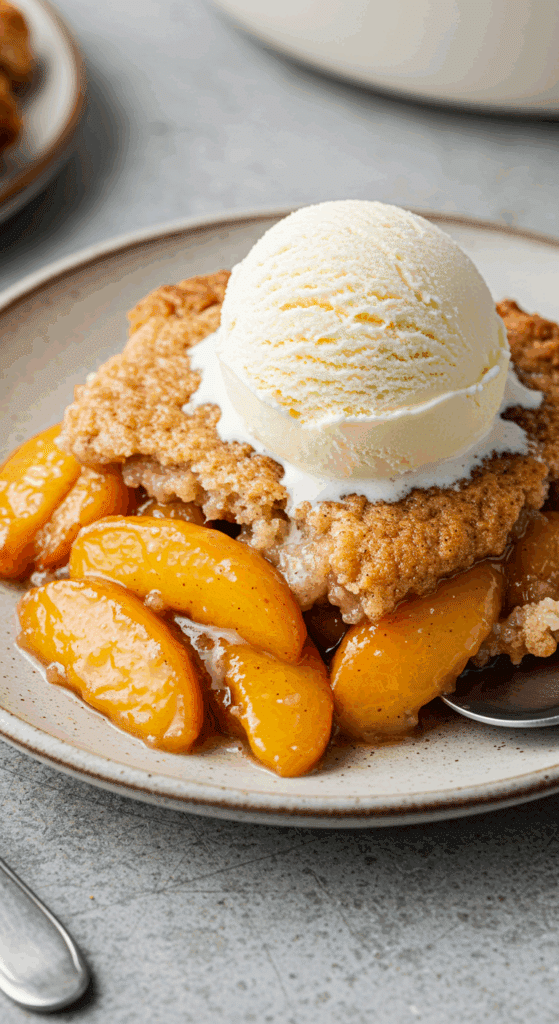 Why These Ingredients Matter: The ripe peaches deliver juicy sweetness, the spices add warmth, and the buttery topping creates a tender, golden crust that balances the fruit’s tartness.