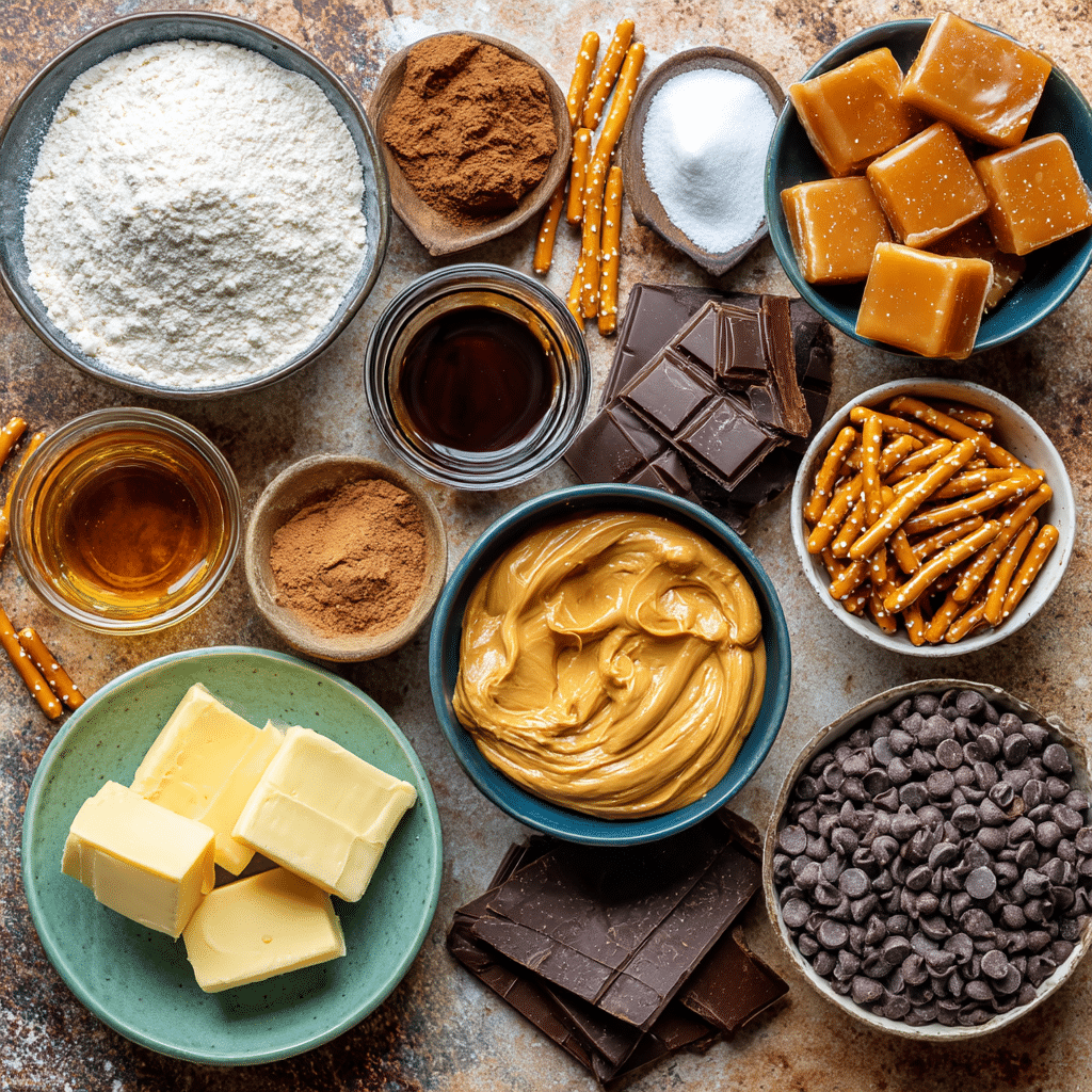 The magic of Slow Cooker Peanut Butter Pretzel Caramel Chocolate Dessert comes from its bold, indulgent ingredients. Each one adds chocolatey depth, peanut butter richness, caramel sweetness, or pretzel crunch to create a cohesive, decadent dessert. Here’s what you’ll need:
