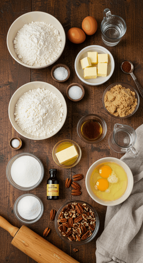 Tip: Keep butter and water cold for a flaky crust; chop pecans coarsely for texture.
