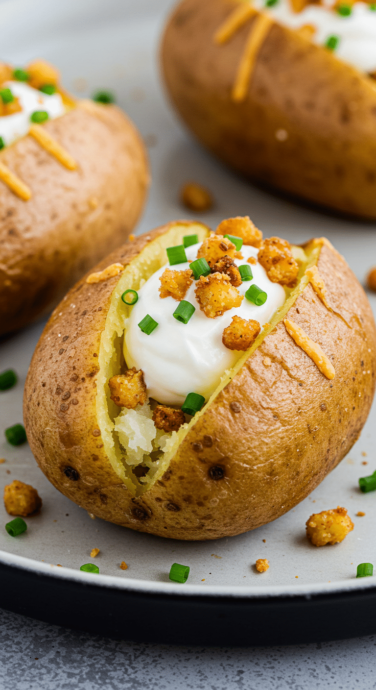 Pro Tip: For a loaded baked potato experience, top with cheddar cheese, sour cream, bacon bits, and chives, or try a gourmet twist with truffle oil or smoked salmon.