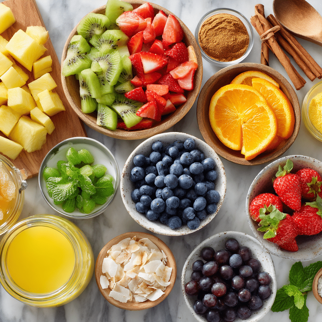 This fruit salad comes together with ingredients that create a vibrant, flavorful dish. Here’s what you need and why each matters: