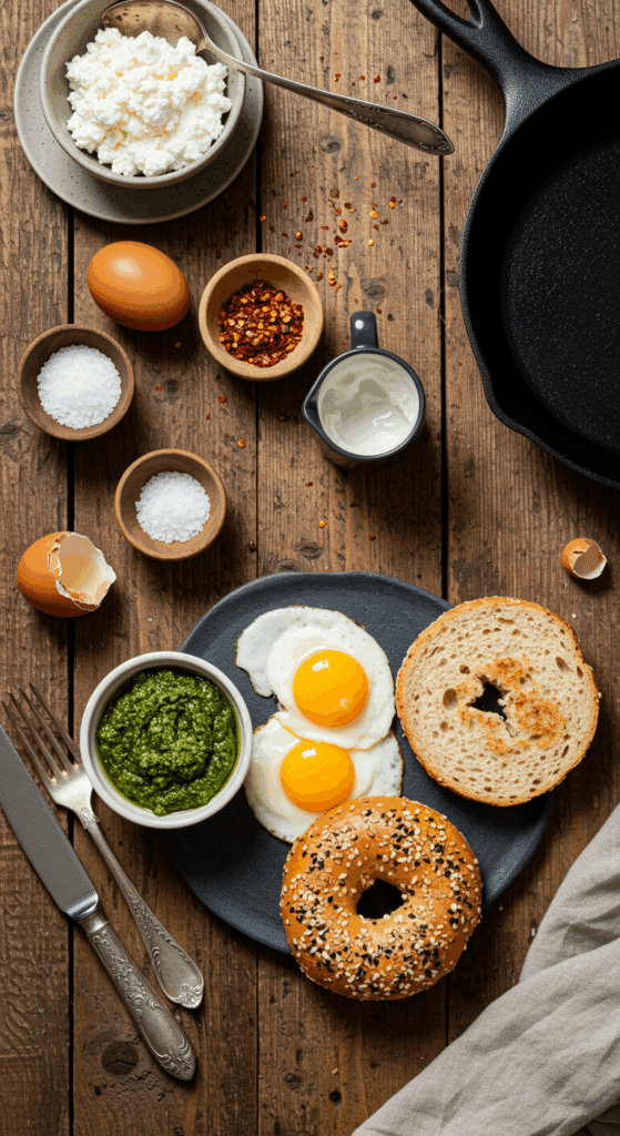 Craving a breakfast that’s bursting with flavor and ready in minutes? Pesto Eggs are a trendy, delicious twist on fried eggs, cooked in vibrant pesto and served on toasted low-carb bagels with creamy cottage cheese and a spicy chili crunch kick. Perfect for busy mornings, a quick lunch, or a savory snack, this dish is simple yet packed with bold flavors. Ready to whip up a plate of zesty goodness? Let’s dive into this easy recipe!