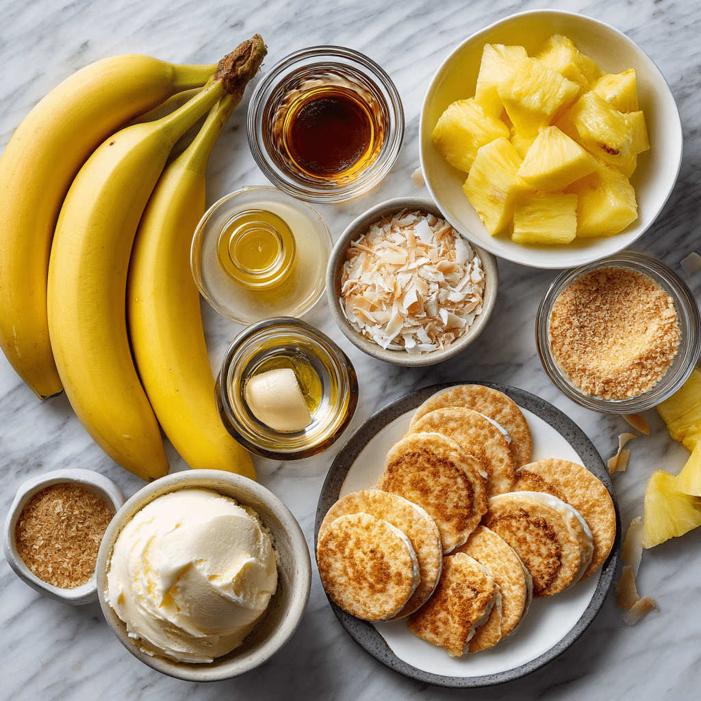 Assembling Pina Colada Bananas Foster is all about layering tropical fruit with a rich, coconutty sauce for a warm, indulgent dessert. Here’s how to put it together: