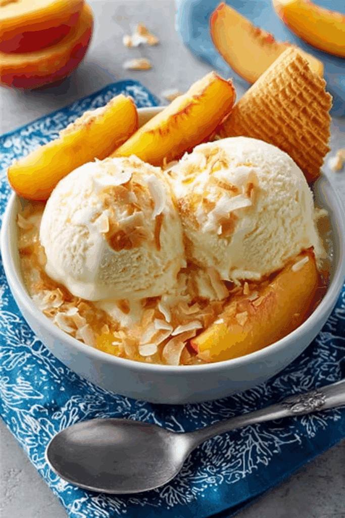- Garnish and Serve: Top with toasted coconut and optional ice cream or wafers for a tropical treat.
