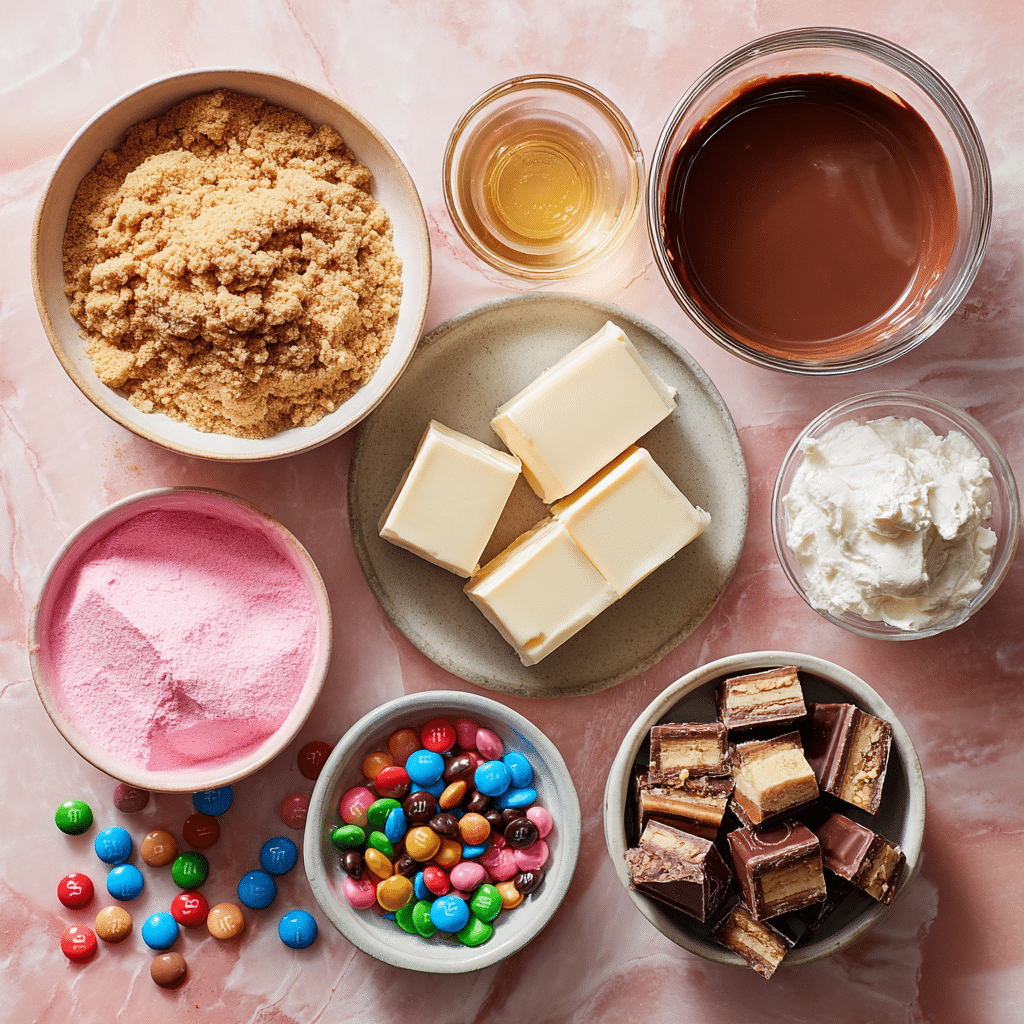 Making Pink M&M Snickers Cheesecake is all about creating a crunchy base, a creamy pink filling, and a fun topping. Follow these steps for a perfect no-bake dessert: