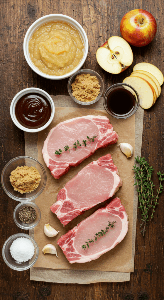 Why These Ingredients Matter: The pork chops provide hearty protein, while the applesauce and brown sugar create a sweet, glossy glaze. The barbecue and Worcestershire sauces add savory depth, and the garlic brings aroma, making this a balanced, flavorful meal perfect for comfort food lovers.