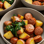 The Potato Kielbasa Skillet is a fast, hearty meal that blends smoky kielbasa, creamy potatoes, and vibrant spinach with a zesty brown sugar-mustard sauce. It’s comforting, versatile, and comes together quickly. Here’s why it’s a standout: