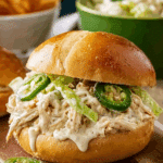- Why It’s Unique: The slow cooker ensures juicy turkey, while pickle juice and jalapeños add a tangy-spicy kick. A light yogurt-based sauce keeps it creamy without being heavy, and kaiser rolls provide a sturdy base. This recipe serves 5, perfect for small families, lunches, or gatherings, offering a healthier alternative to traditional pulled meats.
