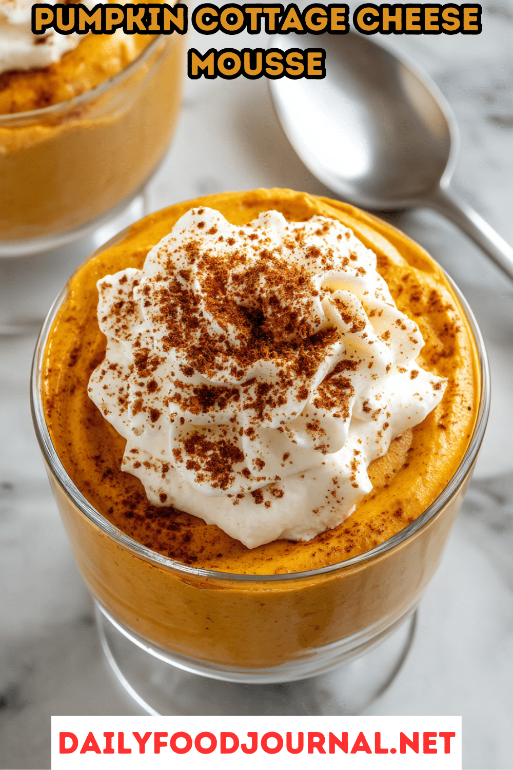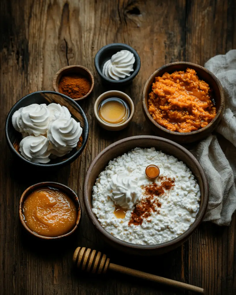 Cottage cheese is the base here, and it blends into a smooth, velvety texture while packing in protein and creaminess. Pumpkin puree adds body, color, and that signature autumn flavor. Honey or maple syrup gives it just enough sweetness without overwhelming the spices. Pumpkin pie spice brings in that warm, nostalgic blend of cinnamon, ginger, and nutmeg. Vanilla extract deepens the flavor and ties it all together. Whipped cream and a dusting of cinnamon on top turn this simple mousse into something that looks and feels festive.