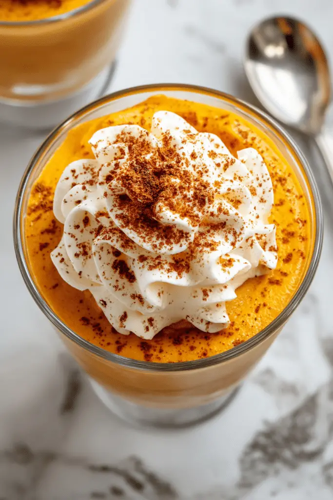 Just before serving, top each mousse with a swirl of whipped cream and a sprinkle of cinnamon. It adds a little visual flair and enhances the cozy, spiced aroma of the mousse. You can also garnish with crushed pecans or graham cracker crumbs for extra texture if you like.