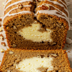 Difficulty level: Moderate. Mixing batter and swirling cream cheese require some care, but the steps are straightforward. Three 8×4-inch loaf pans, mixing bowls, and a whisk or mixer are the main tools, and kids can help stir in nuts or drizzle glaze.