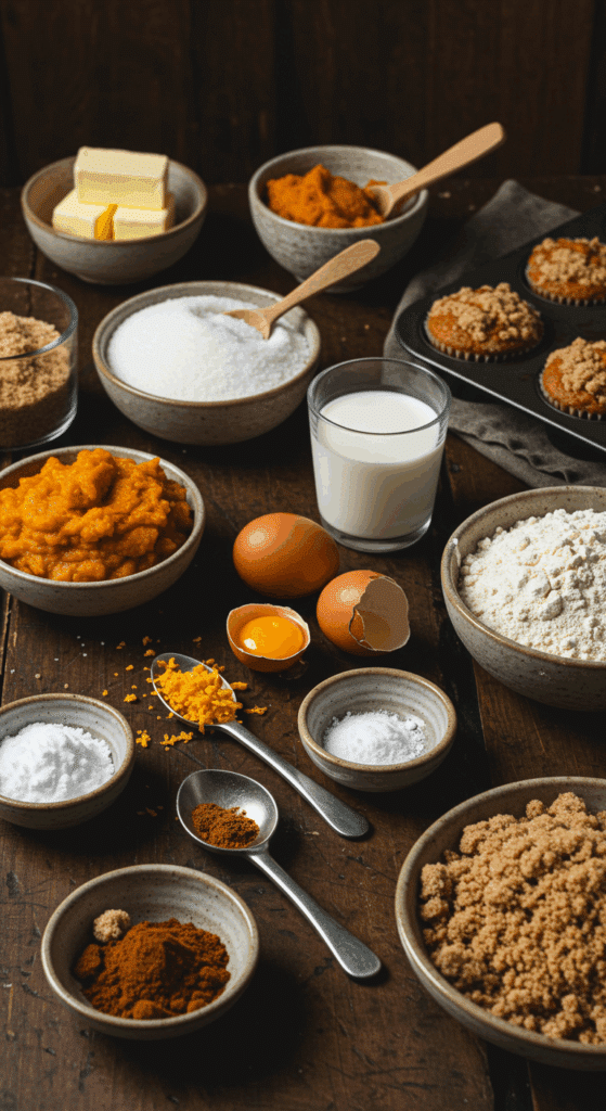 • Presentation: For a fall vibe, use white or orange plates to highlight the golden muffins and streusel. Serve on a rustic tray for gatherings. Tip: Add a small pumpkin or fall leaf for a seasonal display.