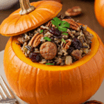 Pumpkin Stuffed with Wild Rice and Sausage is like a fall festival in a dish—think sweet, tender pumpkin stuffed with a savory, nutty mix of wild rice, juicy sausage, tart cranberries, and crunchy pecans. What makes it stand out? It’s a showstopping centerpiece that’s surprisingly easy to pull off, with flavors that scream autumn and a presentation that’s pure Halloween magic. Prep takes about 20 minutes, with 1 to 1.5 hours of mostly hands-off baking, making it ideal for serving four at a dinner party or family meal.
