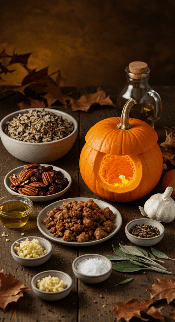 The charm of Pumpkin Stuffed with Wild Rice and Sausage lies in its wholesome, flavorful ingredients that come together to create a cozy, festive dish. Most are easy to find, keeping it budget-friendly. Here’s the lineup for four servings, with why each ingredient matters and swaps for flexibility.