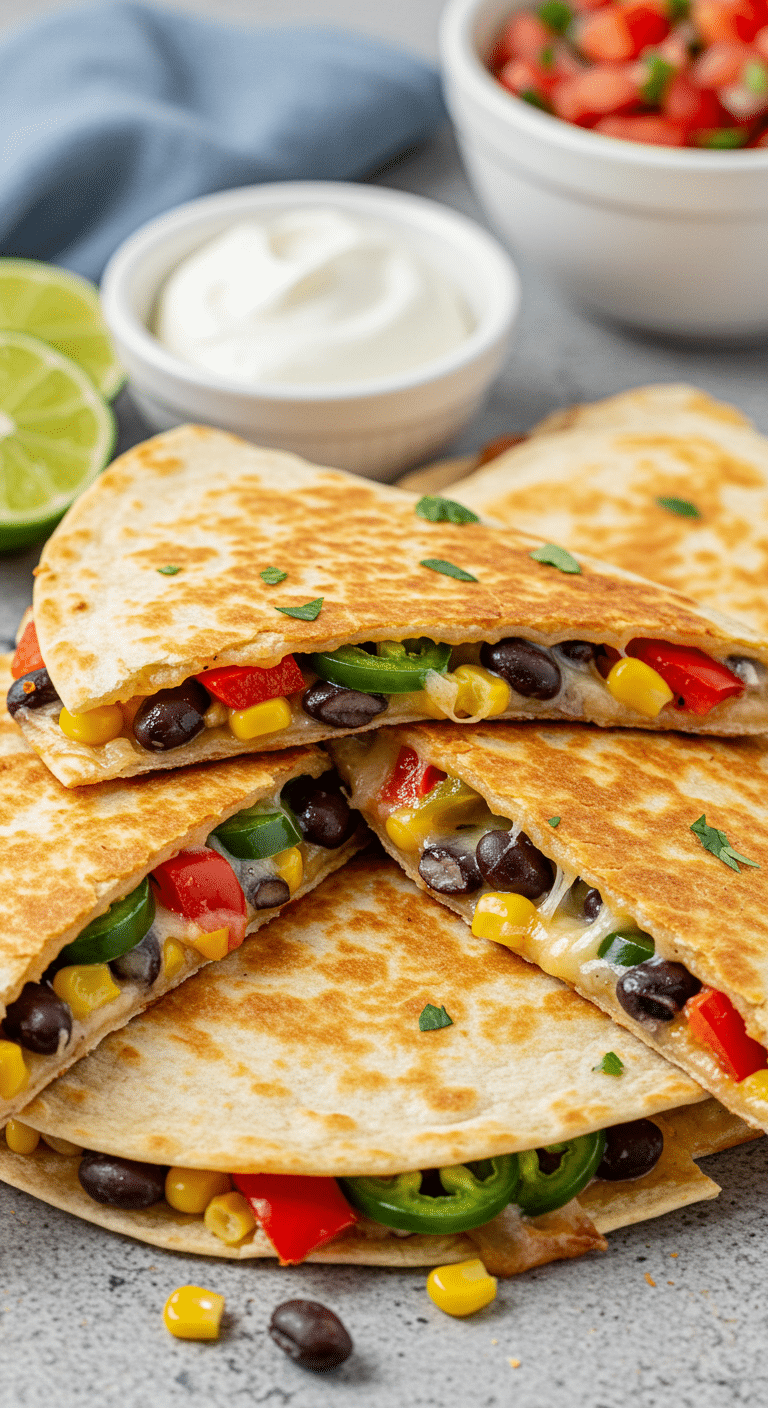 Craving a quick, comforting dish that’s perfect for any night of the week? The Quesadilla Recipe, rated 5 from 12 votes, is your answer! This vegetarian recipe features flour tortillas stuffed with a melty blend of cheddar and Monterey Jack cheeses, black beans, red bell pepper, corn, and jalapeños, cooked to golden perfection. Wondering how to create these restaurant-quality quesadillas at home in just 10 minutes for a delicious meal for 4? Follow along, and I’ll guide you through every step to make this easy, crowd-pleasing dish that’s ideal for quick dinners, vegetarian meals, or casual gatherings!