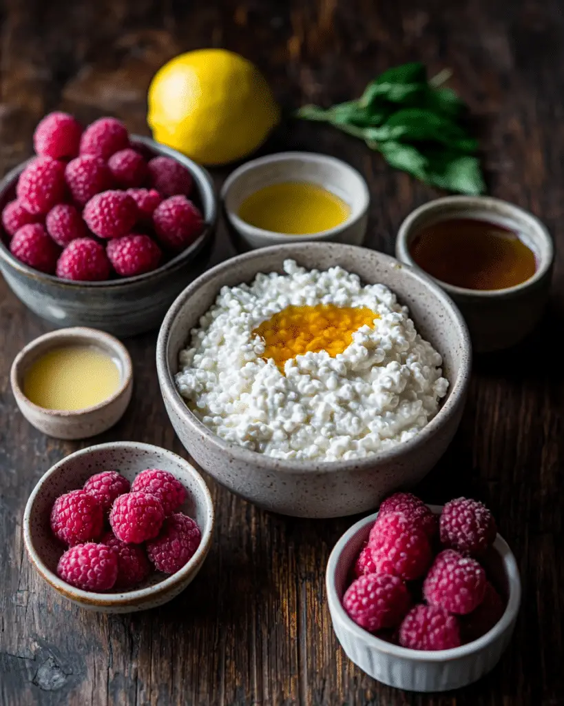 Cottage cheese forms the rich, creamy base that blends beautifully with the raspberries. Fresh or frozen raspberries bring natural sweetness and a slight tartness that keeps the ice cream refreshing. Honey or maple syrup adds just the right touch of sweetness without overpowering the fruit. Lemon juice brightens the entire flavor and makes the raspberries pop.