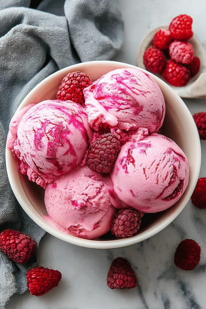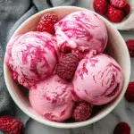 Raspberries always remind me of summer picking trips, filling buckets with ripe berries and sneaking a few sweet bites along the way. This ice cream captures that same joyful, berry-filled feeling with a creamy twist. Every spoonful feels like a sweet reminder of long sunny days and simple pleasures.
