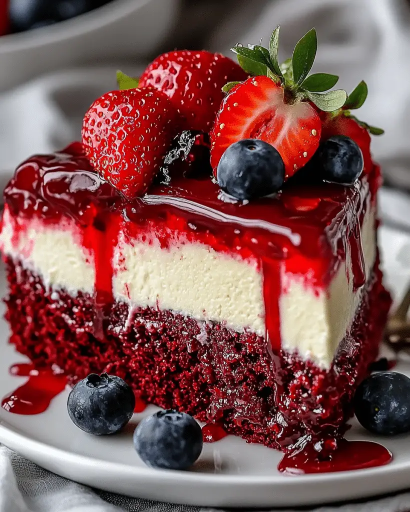 The inspiration came from wanting to combine the iconic flavor and color of Red Velvet cake with the cool, creamy tang of strawberry cheesecake, but without the fuss of baking a traditional cheesecake layer. Creating a no-bake cheesecake topping for the baked cake base proved to be a simple yet brilliant solution. It delivers that cheesecake experience effortlessly.