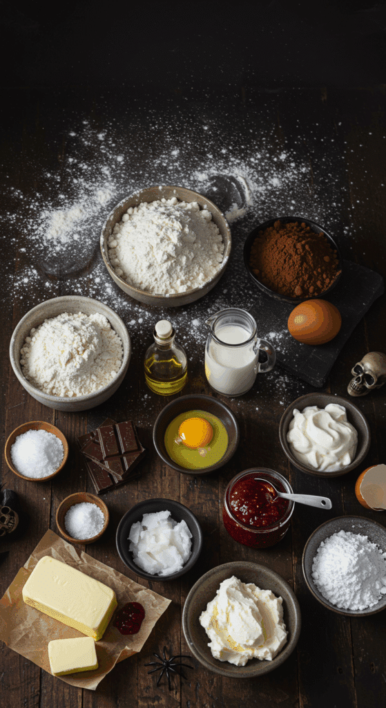 This recipe uses simple ingredients to create a spooky, flavorful cupcake. Here’s what you’ll need, why each one matters, and some substitutions: