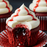 Red Velvet Vampire Cupcakes are the ultimate Halloween dessert—moist, flavorful, and just creepy enough to thrill. With their quick 1-hour active prep, tangy red velvet base, and gory jam filling, they’re perfect for spooky parties or family baking nights. Whether you stick with the classic recipe or try a new variation, these cupcakes will have your guests biting with delight. So grab your ingredients, pipe that frosting, and create some vampire-approved treats. Share your creations in the comments—what’s your favorite way to make these cupcakes extra spooky?