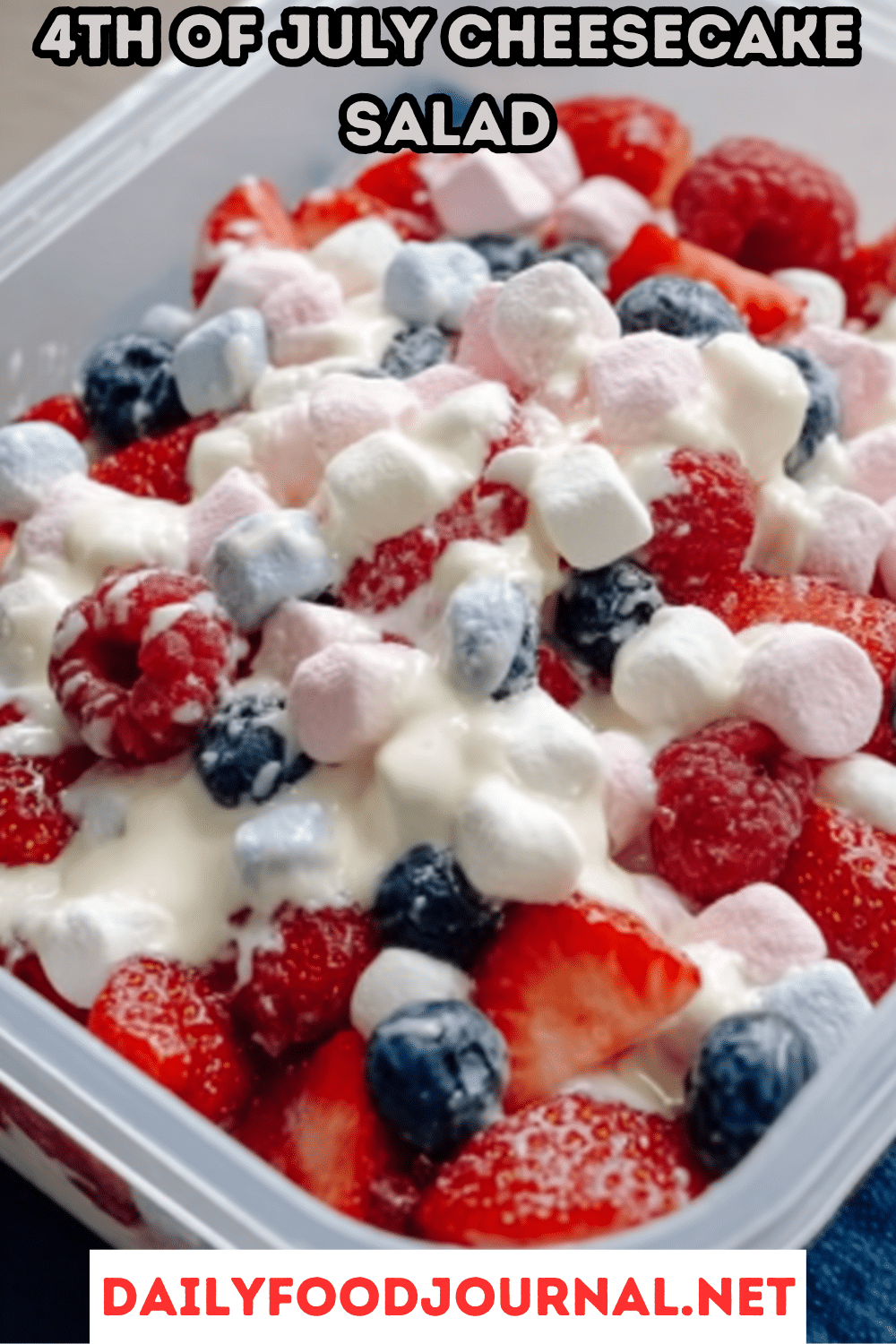 Red, White & Blue Cheesecake Salad is ideal for prepping ahead and storing: