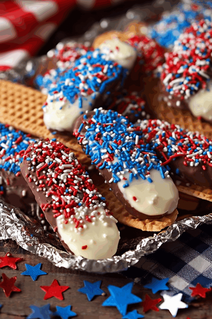 - Patriotic Crunch: Add crushed pretzels or nuts to the wet chocolate for extra texture.