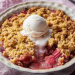 6. Serve: Serve the Rhubarb Crisp warm, with a scoop of strawberry ice cream, if desired. Enjoy!